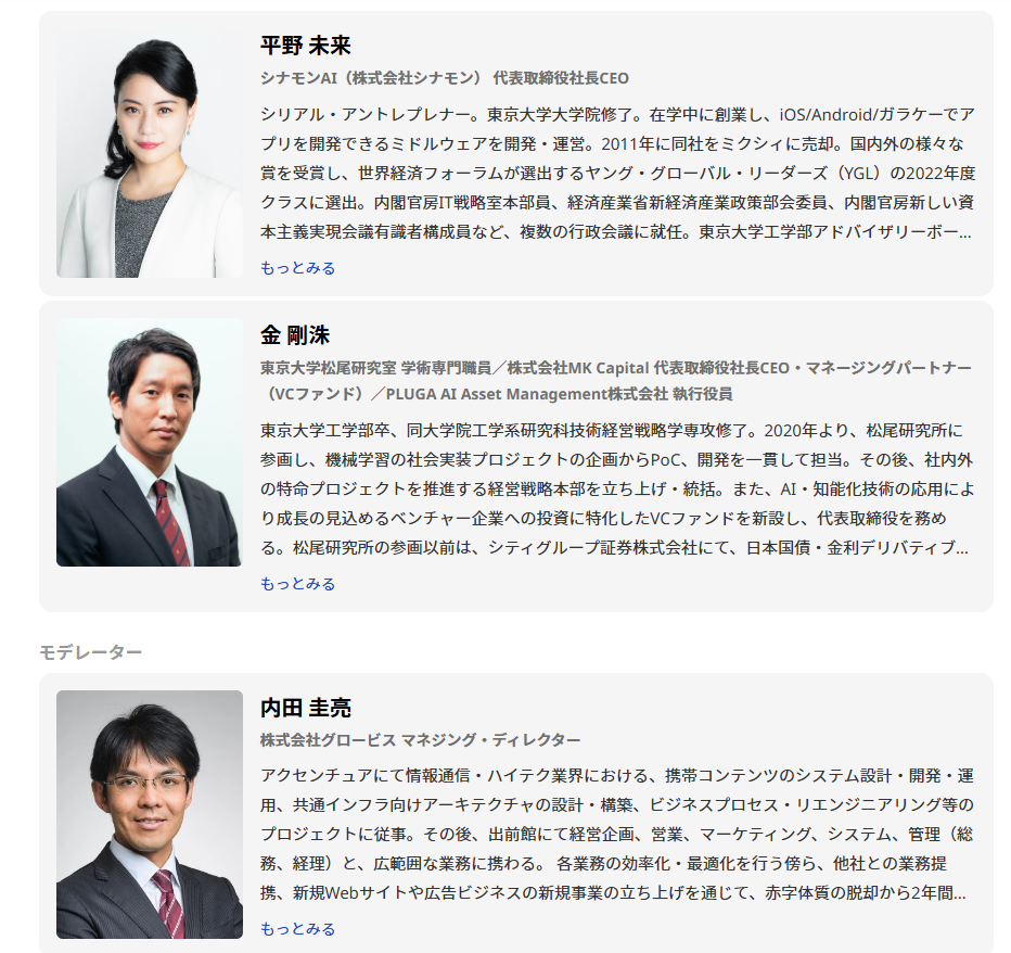 In this session, titled "The Future of the AI Revolution: How AI Will Change People and Organizations," we will be delving deeply into current technological trends and future possibilities from the forefront of AI implementation in society, together with Mr. Kim Go-soo, Director of Matsuo Research Institute, Inc. Please take a look.