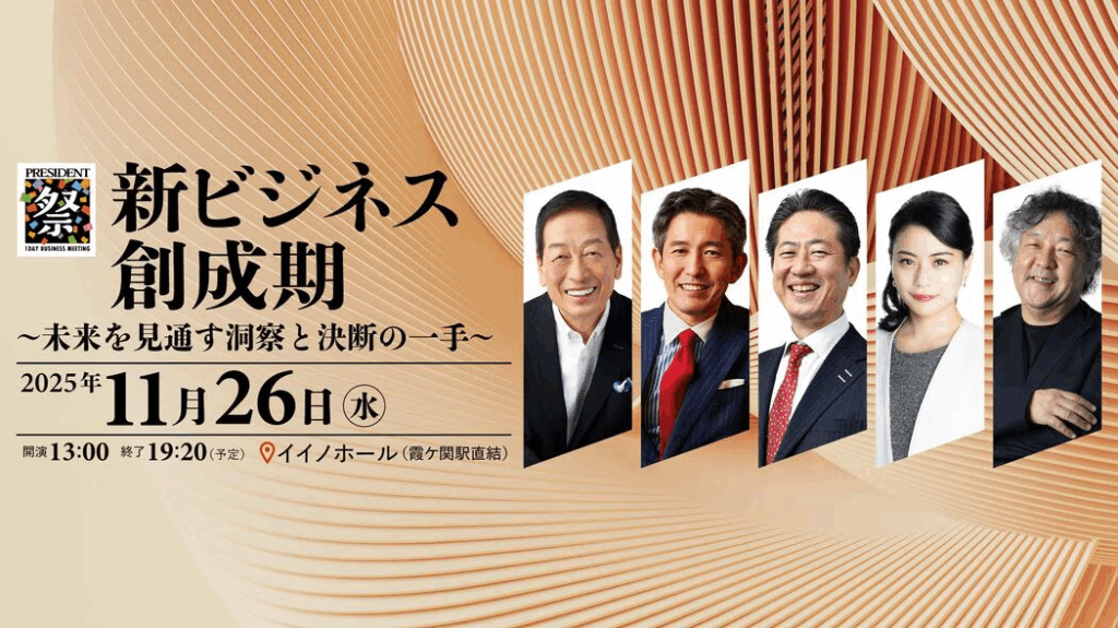 2025年11月26日(水)に開催されるプレジデント社主催のビジネスイベント「PRESIDENT祭2026 新ビジネス創成期 ~未来を見通す洞察と決断の一手~」内のパネルディスカッションに、モデレーターとして、当社CEOの平野が登壇いたします。