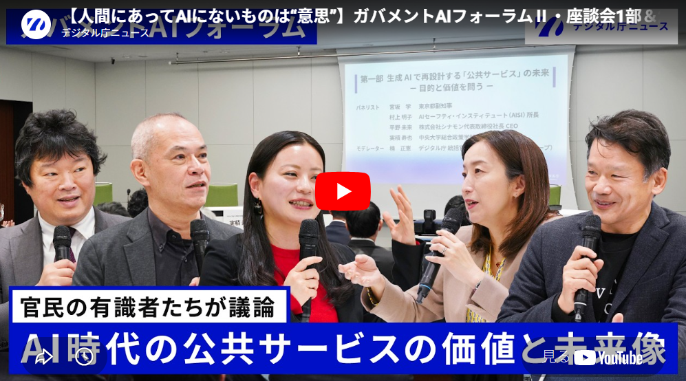 現在、各府省庁において生成AI利用環境「源内(GENNAI)」の導入が進み、行政実務におけるAI活用の土台が急速に整いつつあります。本フォーラムでは、「AIをどう使うか」という技術的側面に留まらず、AIによって変容する「公共サービスの本質」や未来像について、官民のトップランナーによる深い議論が行われました。